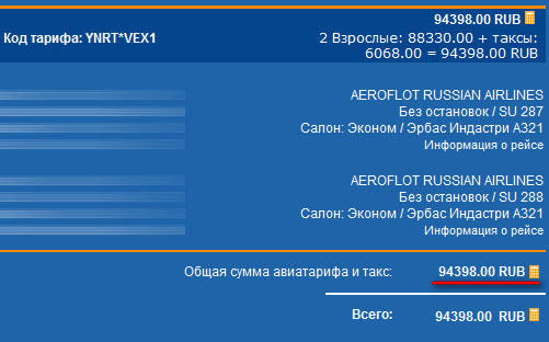 У Аэрофлота получалось 52 тысячи рублей на двоих.