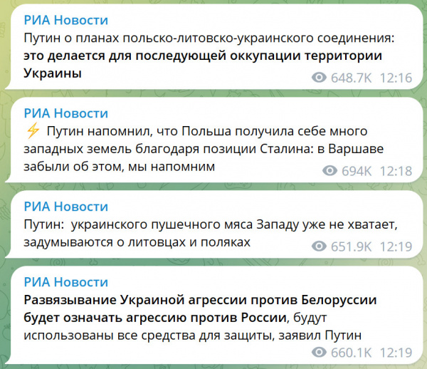 И главное, обвиняет Польшу и восточноевропейские страны в том, в чем занимается сам - оккупации части Украины, под соусом "исторической справедливости". Буквально.