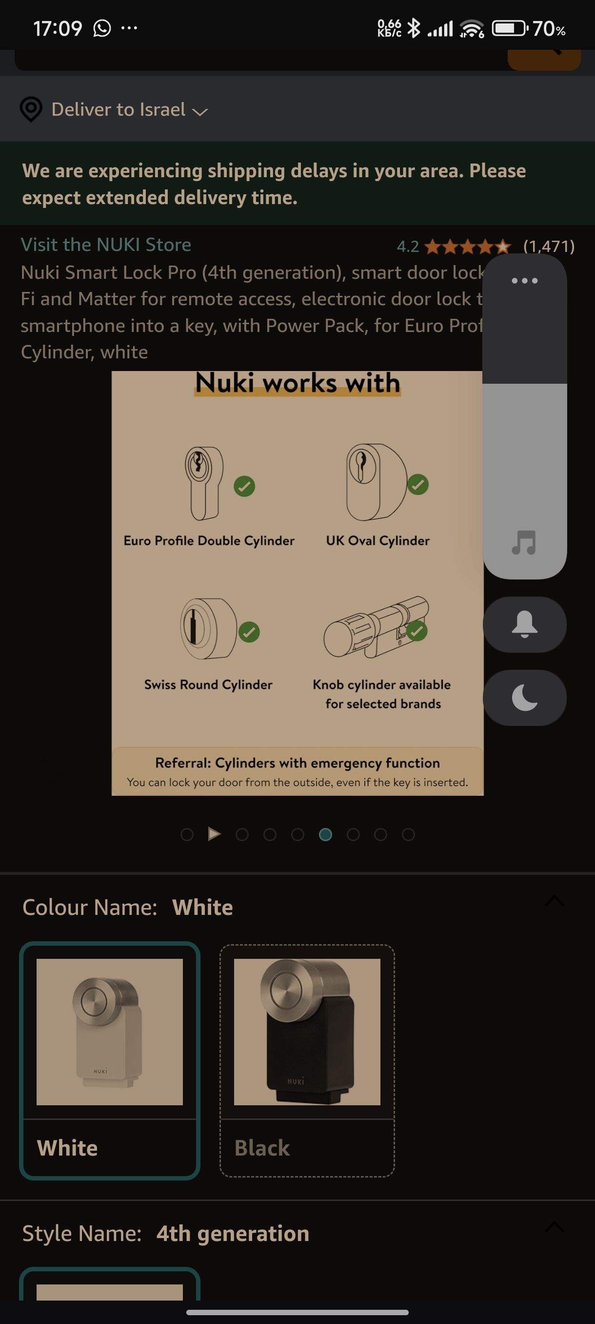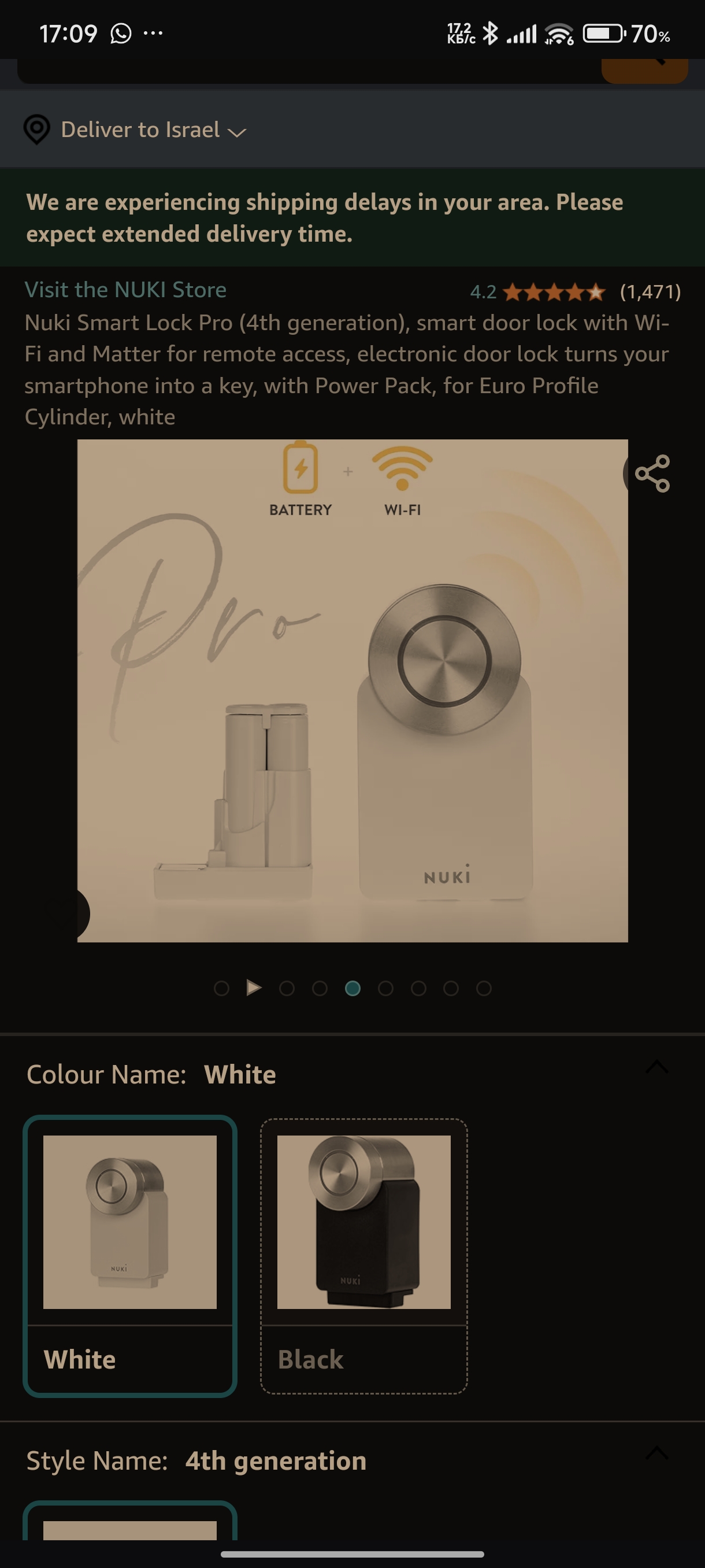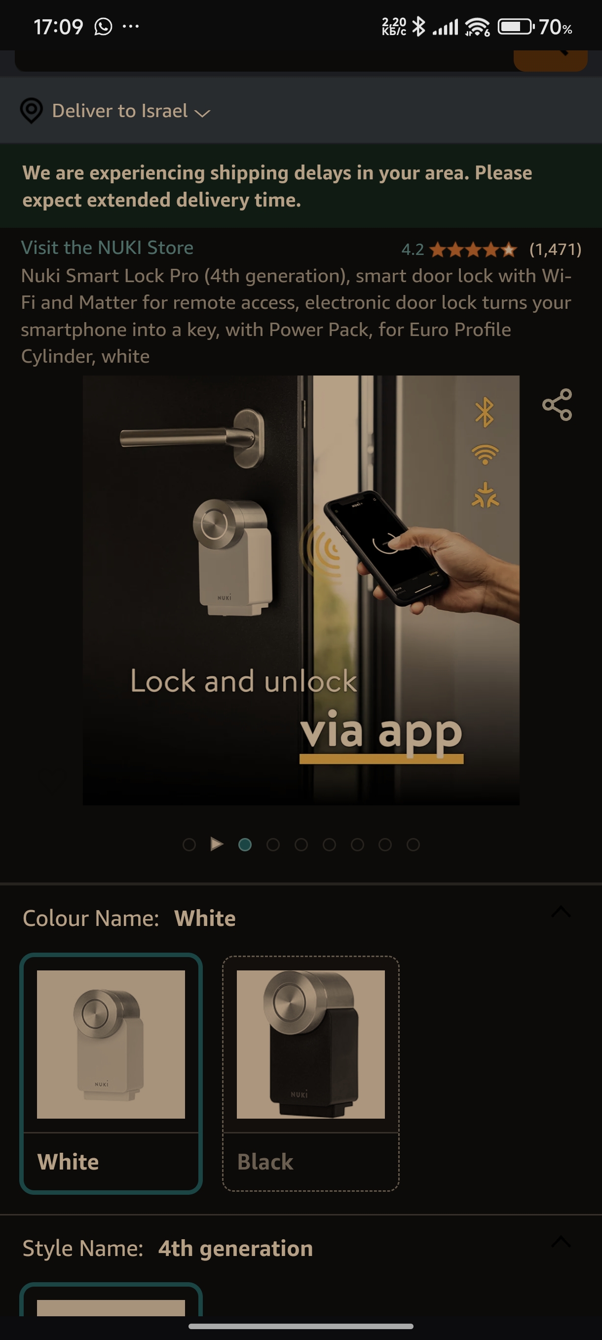 Nuki Smart Lock Pro (4th generation), smart door lock with Wi-Fi and Matter for remote access, electronic door lock turns your smartphone into a key, with Power Pack, for Euro Profile Cylinder, white amzn.eu