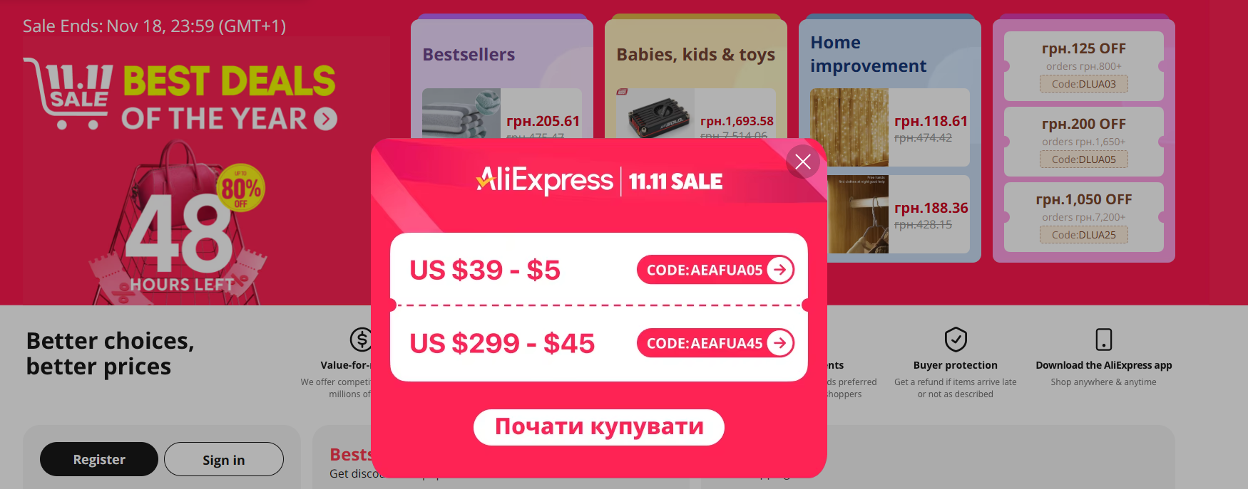 Большие скидки на отдельные товары будут доступны на главной странице в первый час распродажи.