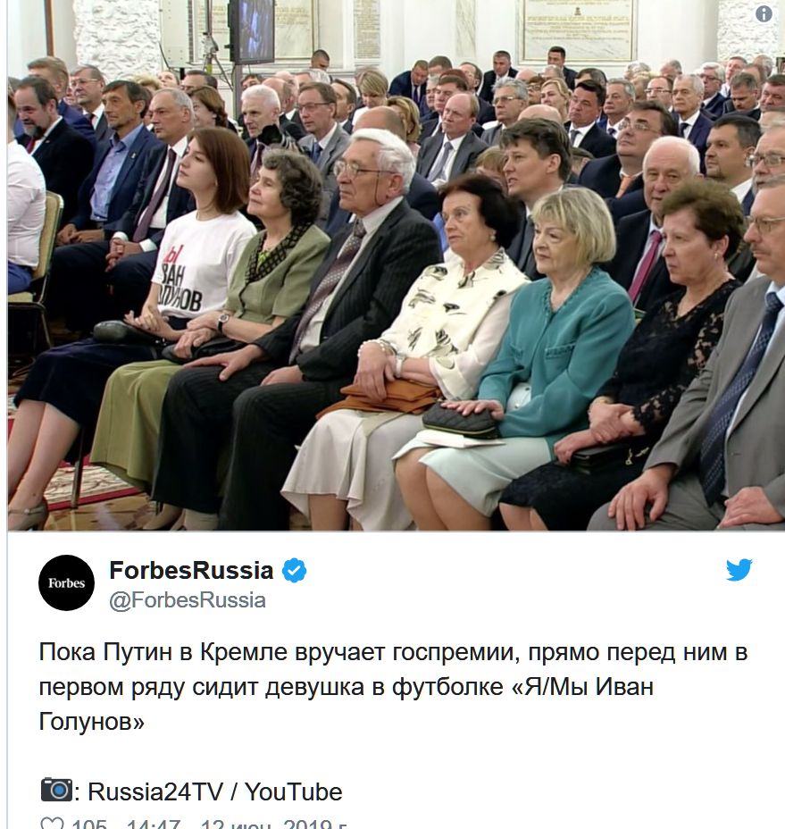 Задержаных обвиняют а том, что они выкрикивали антиправительственные лозунги, - "Иван Голунов", - да, прямо так и пишут в протоколы.