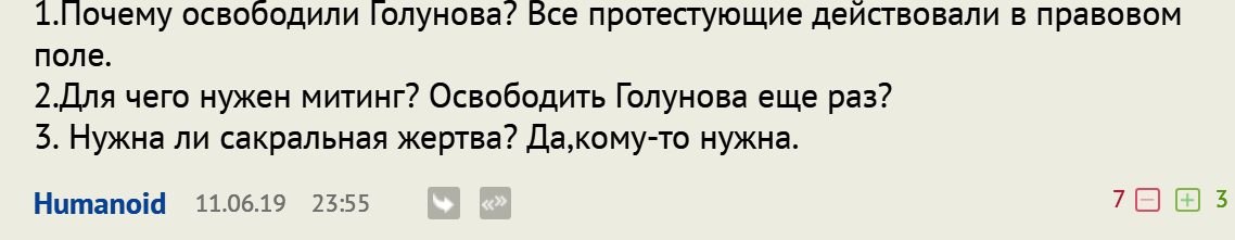 Иначе говоря – вы автоматически определили в "желающих быть быдлом" совершенно всех, кто выступал против несогласованной акции и предлагал дождаться согласованной даты (включая и самого Голунова, кстати).