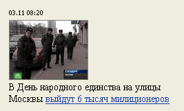 Чего же удивительного, что в день, когда в Москве (да и в других крупных городах страны) различные провокаторы планируют нарушать общественное спокойствие, да и уголовное законодательство, на улицах будет дежурить большое количество милиционеров? Более того, большое количество милиции естественно для нормального обеспечения безопасности любого действительно массового мероприятия.
