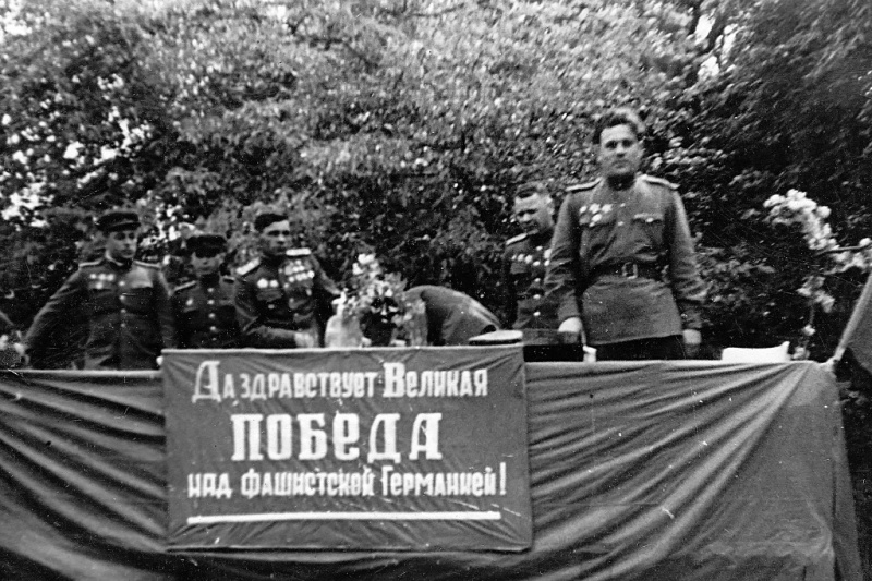 Вот он второй слева на снимке, сделанном 8 мая 1945 года в Берлине.
