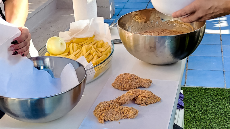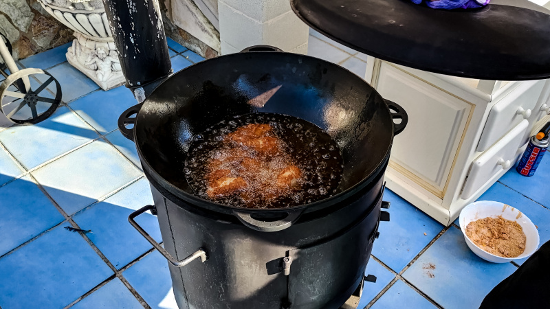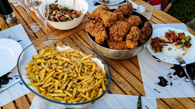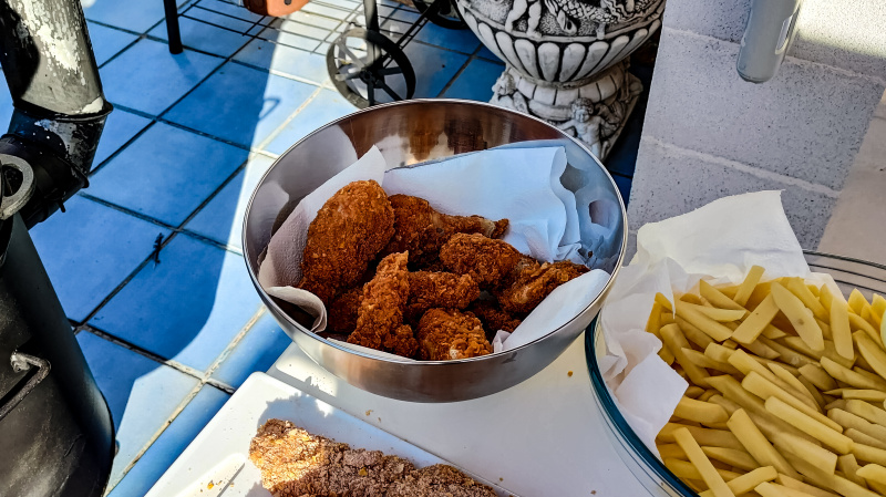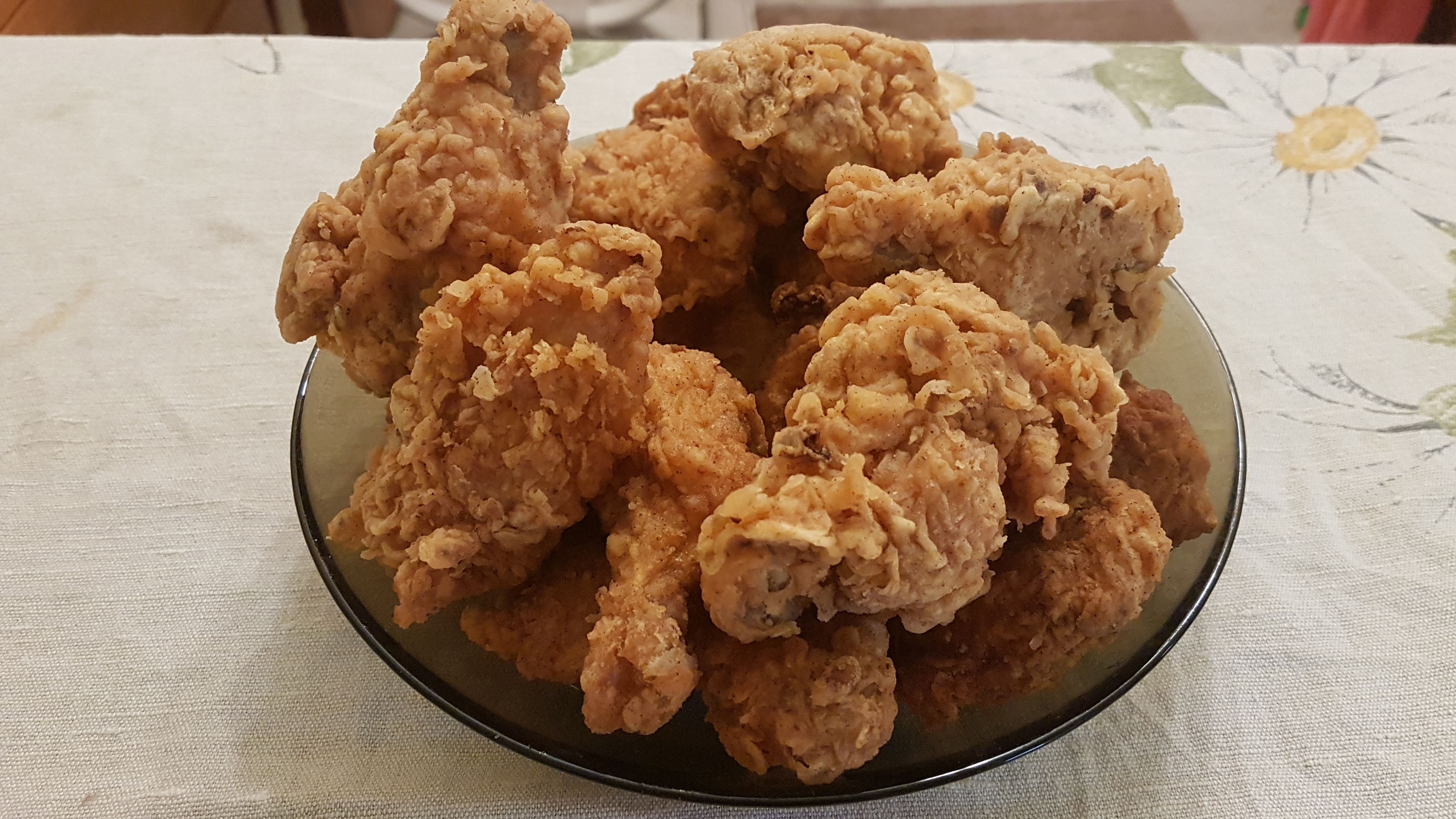 Вчера с друзьями отмечали "День вредной, но вкусной еды". В честь этого дня решили устроить "KFC по-домашнему": курочка в обсыпке, приготовленная во фритюре, ну и картошка во фритюре: все очень вредное и очень вкусное, особенно когда домашнего приготовления, а не в KFC.