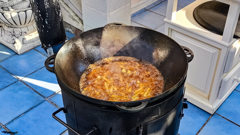 3. Прокалить с маслом - я налил растительного масла (рафинированное дезодорированное), с водой. И накрыл крышкой. Масло с водой хорошо кипело, брызгами все поверхности вместе с крышкой покрыло.