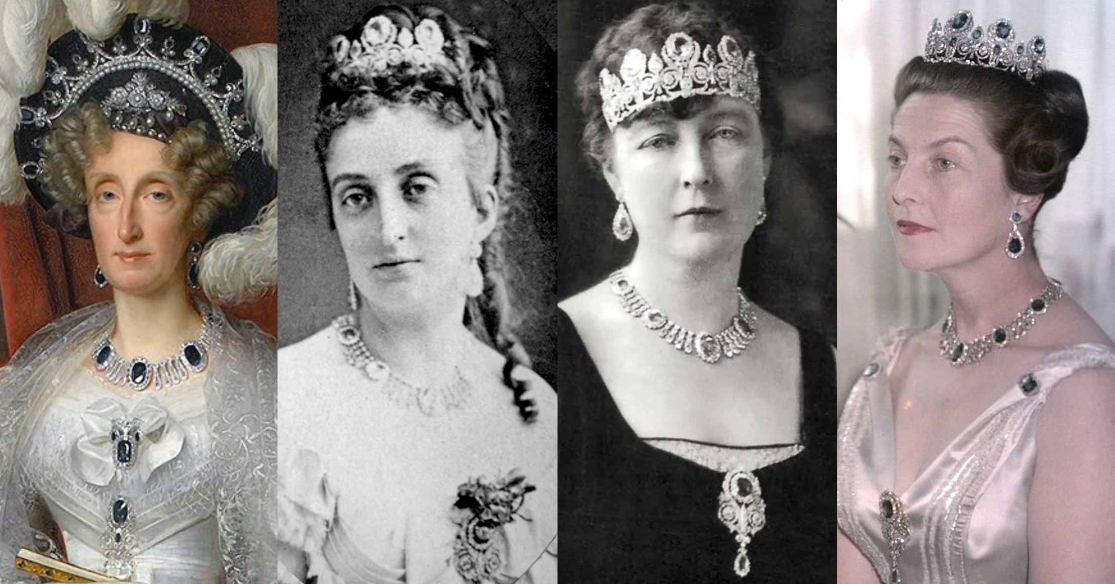 Из Лувра были украдены восемь ювелирных изделий: это сапфировые тиара, ожерелье и серьги, принадлежавшие голландской королеве Гортензии де Богарне и французской королеве Марии-Амалии, изумрудные ожерелье и серьги второй супруги Наполеона Марии-Луизы, брошь-реликварий, тиара и большой бант из корсажа императрицы Евгении.