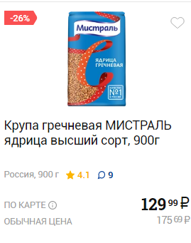 Крупа гречневая МИСТРАЛЬ Гречка фермерская, 900г