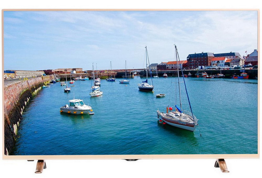 Однако к ключевым особенностям модели можно отнести не только начинку, но и дизайн. DEXP F43B8000K – ультратонкий телевизор, сравнимый по толщине с 15,5 мм диаметром копеечной монеты (!). Да еще и заключенный в металлический корпус с тонюсенькими (их реально почти не видно) рамками вокруг экрана – это большая редкость для телевизоров, обычно они насквозь пластиковые. Что касается цвета, то DEXP F43B8000K золотисто-бронзовый – как, например, соответствующая версия iPhone 6s или 12-дюймового MacBook. А еще у модели очень изящные ножки, по цвету они совпадают с корпусом телевизора. Смотрится телевизор очень здорово даже в выключенном состоянии, а во включенном – еще лучше. Потому что к дизайну корпуса добавляется сочная и яркая картинка. Дисплей в DEXP F43B8000K 43-дюймовый с разрешением Full HD (1920 х 1080 точек) и системой подсветки EDGE LED.