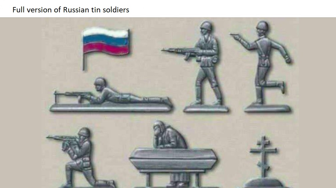 Нет, эти игрушки дают в нагрузку к мирным Барби. Заставляют по линии профкома предъявлять чеки за покупку всякого военного барахла и георгиевских лент. Переоборудовать коляски в эрзацтанки и одевать грудничков в пилотки и гимнастерки. Так ведь?