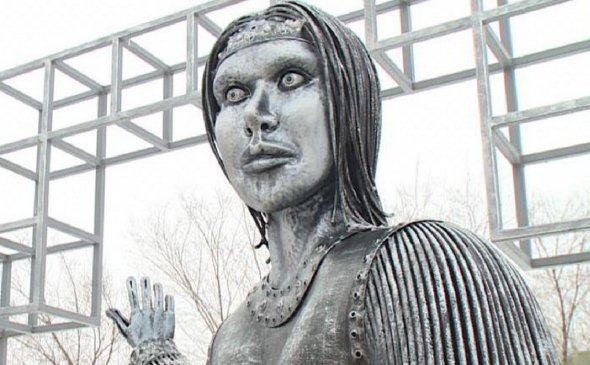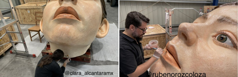 Весит голова 120 кило, размер ее - 1,7 метра. Сделана голова из смолы и стекловолокна.