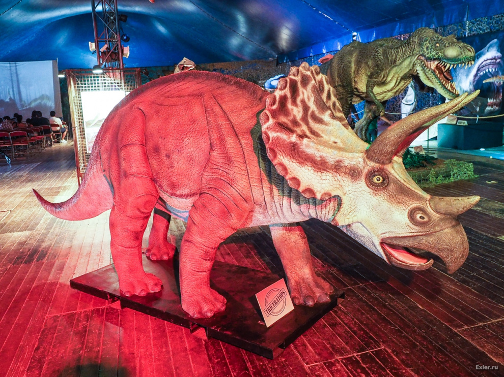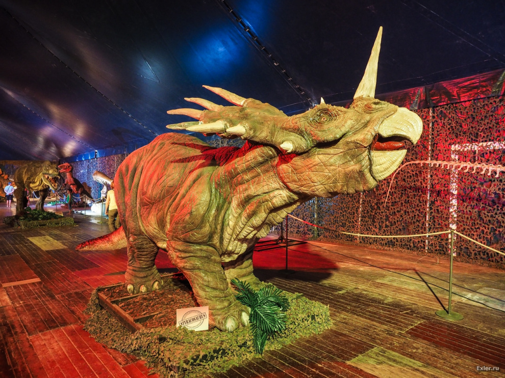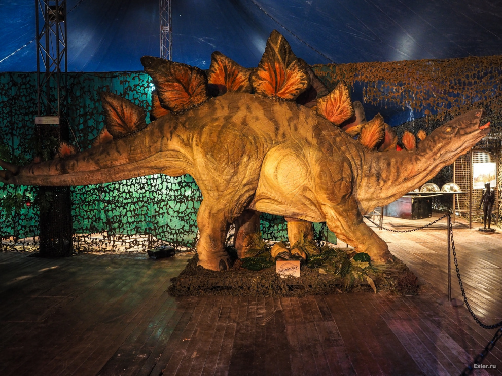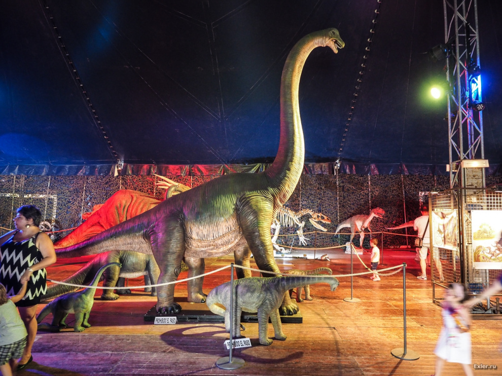 В соседний городок привезли выставку динозавров. Мы, конечно, после посещения Динополиса свой динозаврий зуд уже более или менее утолили, но тем не менее на выставку сходили, потому что ребенку все равно интересно. Предлагаю вашему вниманию небольшой фоторепортажик.