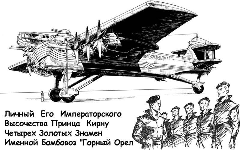 Пример: Его Императорского Высочества Принца Кирну Четырех Золотых Знамен Именной Бомбовоз «Горный Орел».