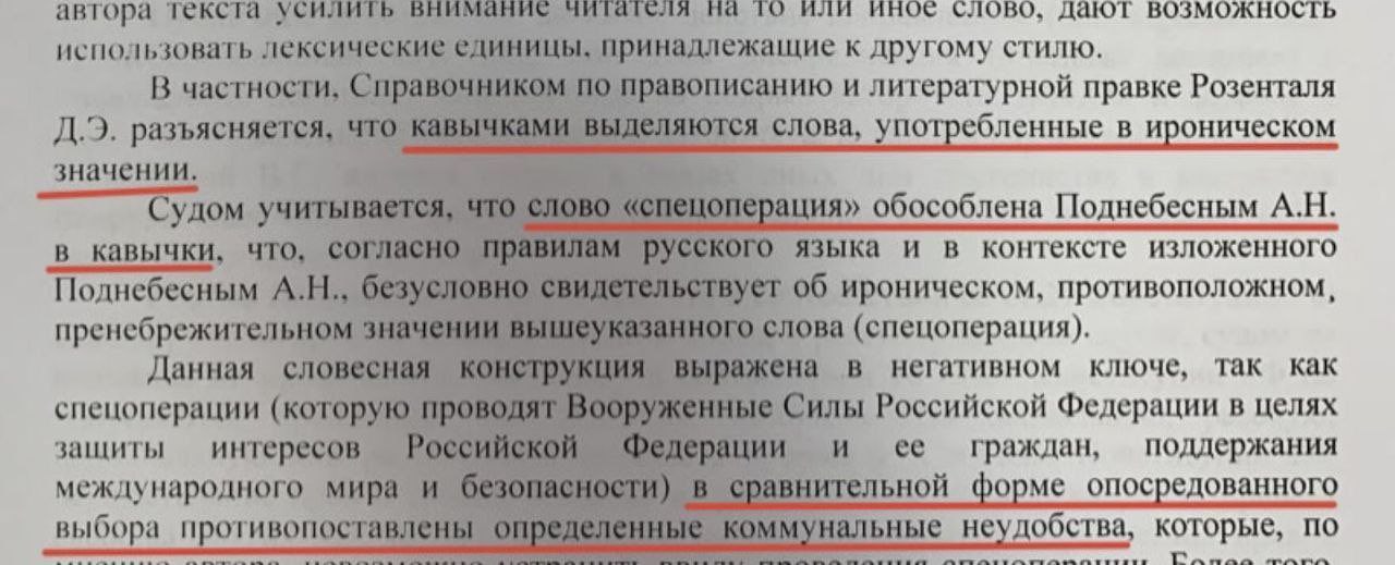 Нижегородского активиста Алексея Поднебесного оштрафовали на 30 тысяч рублей за «дискредитацию» российской армии (ст. 20.3.3 КоАП) из-за того, что он написал слово «спецоперация» в кавычках. Об этом он сам рассказал изданию SOTA.