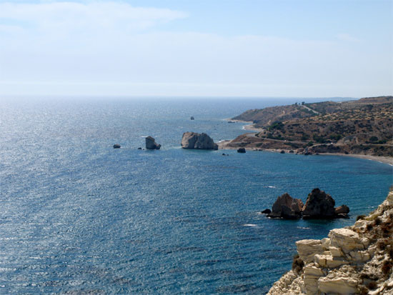 Сначала поехали посетить скалу Афродиты - место, где она родилась. Да-да, никаких тебе роддомов и так далее, просто скала и сплошная антисанитария. Вот этот комплект (вторая гряда) - Дита родилась, как я понял, на самой маленькой.