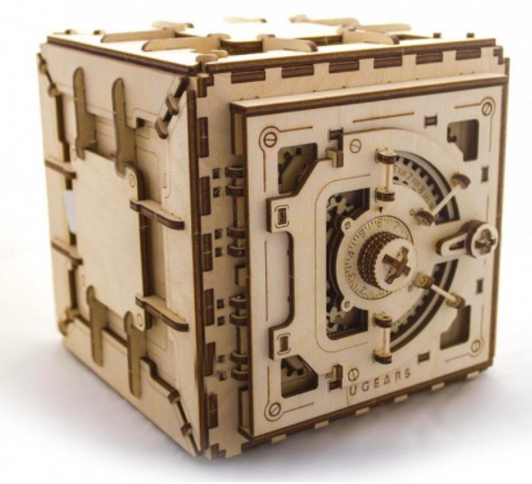 Наш с сыном любимец, пользующийся неизменной популярностью и у покупателей - "Сейф". Это был первый сложный конструктор Ugears, который мы собрали и там все даже заработало (вот до чего дошло, учитывая нашу криворукость). 170 деталей, работающий кодовый замок, стопроцентная функциональность: младший Экслер до сих пор в нем что-то хранит и хвастается сейфом перед своими гостями. Я тоже хвастаюсь перед своими гостями, которые знают, что я руками даже лампочку толком вкрутить не могу. 3990 рублей, с промокодом - 2593 рубля.
