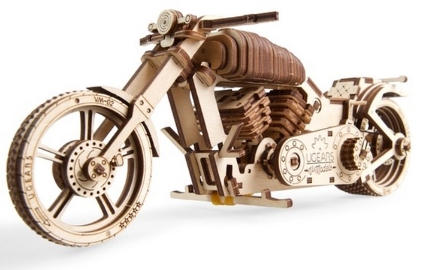 Обязательно нужно напомнить про "Байк VM-02". Настоящий чоппер с мощным резиномотором: проходит до 3-х метров на одном заводе! 189 деталей, собирать рекомендуется под песни ZZ Top! 2990 рублей, с промокодом - 1943 рубля!