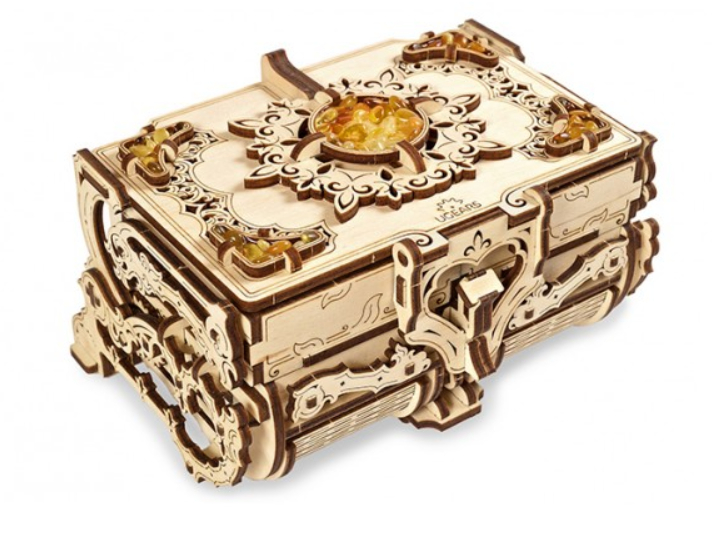 Недавняя новинка - "Янтарная шкатулка"! 189 деталей, 6 легко открывающихся ящичков, два потайных отдела, раскрывающиеся по нажатию скрытой кнопки, надежный замок, удерживающий крышку закрытой. 4990 рублей. (Со скидкой по промокоду - 3243 рубля.)