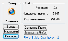 FireFox Builder Optimization - программка, сидящая в трее и оптимизирующая расход памяти FireFox. Оптимизирует реально и конкретно - это очень заметно, особенно при открытии большого количества окон. При этом вроде как слегка замедляет работу браузера (свопит), но на моем компьютере это совершенно не ощущается. Ну и самое главное - когда выгружаешь окна, дырки в памяти не остается.