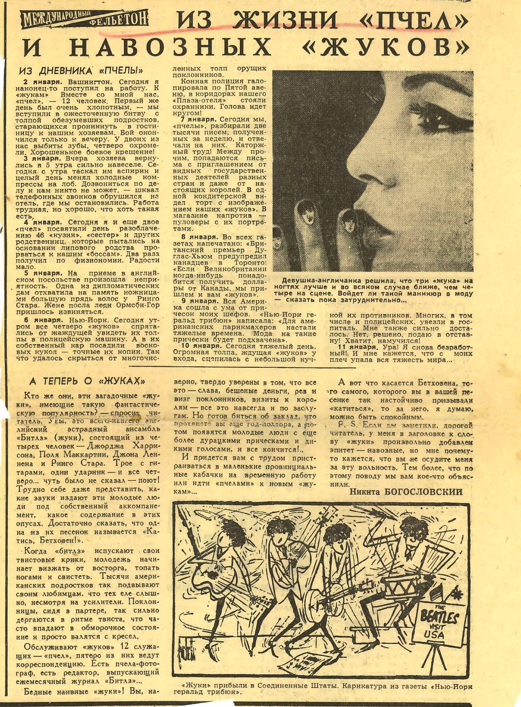 Ну, справедливости ради, надо сказать, что в Англии тех лет битлами тоже много кто возмущался. Хотя и не так как роллингами. А что касается тогдашней советской "прессы" -- так а что вы от нее хотите?)
