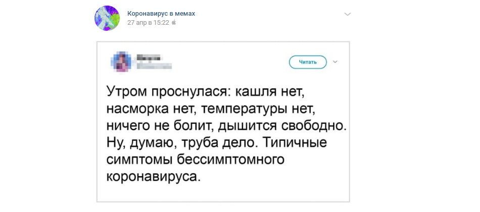 Сейчас это работает как бы и в другую сторону. Когда узнаешь, что не смогли спасти 40-летнего врача. Во первых - 40-летнего, во вторых - врача (который как раз и работал с ковидниками). Так что все эти ерничаня про вакцину до поры до времени, "жареный петух в одно место не клюнет".