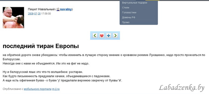Он пытался окучивать точно ту же массу, что и Путин и все эти грызуны, небутерброды, тараканы - банальный входной билет к русскому человеку, чтобы тот подозрительного интеллигента нахер сходу не послал. Ну а дальше Путин выложил козырь с надписью "всем разрешаю превратиться в кровожадных свиней", на что борцам с коррупцией возразить оказалось решительно нечего, народ выбор сделал.