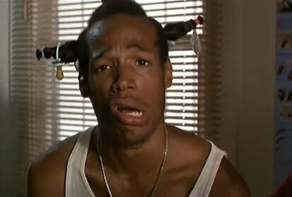 Скрывшийся в чаще Хищник использует последний шприц-аптечку и воет. По тому, как лихо он каждый раз подставляется, мы понимаем, что это, наверное, какой-то немножко умственно отсталый Хищник. И его не просто высадили на Землю, а, метафорически выражаясь, сбросили со скалы, как в Древней Спарте.
