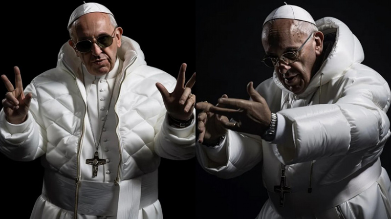 Сообщается, что пользователи Midjourney создали ряд изображений, которые получили нежелательное внимание. На одном из них представлен Папа Римский Франциск в стильном белом пуховике и ожерелье, инкрустированном бриллиантами. Идеей для другой серии фото послужила новость о якобы возможном аресте Дональда Трампа — на них изображён экс-президент США, преследуемый полицией. И в обоих случаях сгенерированные изображения выглядят более чем правдоподобно.