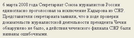 Доказательств журналистской деятельности Кадырова в результате журналистского расследования обнаружено не было.