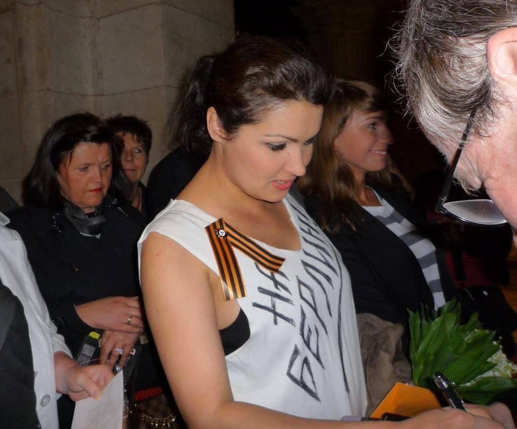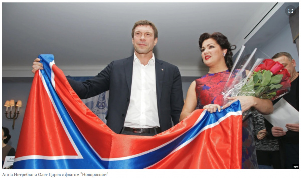 Как известно, мировая знаменитость, оперная певица Анна Нетребко - большая фанатка путинского Мордора. Она являлась доверенным лицом Путина, с большим удовольствием получала из его рук всякие медальки-побрякушки, более того, она даже фотографировалась с флагом этой "новороссии" вместе с одним из тех бандитов, которые заварили кровавую кашу в Донецке-Луганске. Патриотка, в общем, куда ни клюнь.