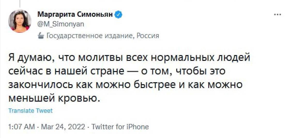 Напомню, что за лозунг "Нет войне" в России штрафуют на 50 тысяч рублей, судами официально признано что это "дискредитирует ВС РФ", без уточнения "а вдруг они имели в виду войны начатую Украиной". Не имели, "Нет войне" читается сейчас однозначно.