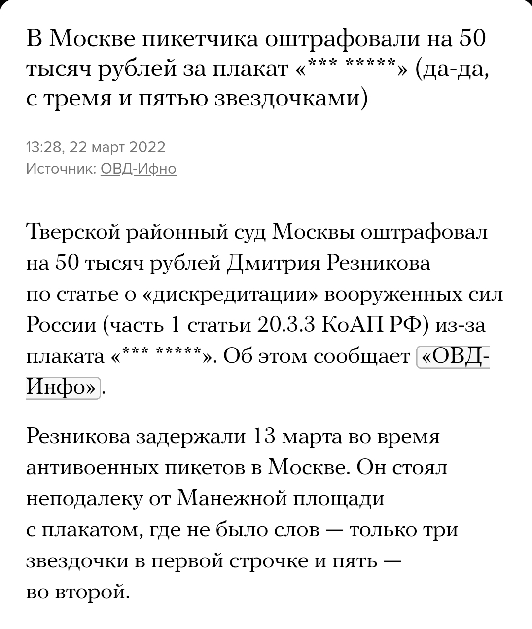Не стоило бы, если б это все не было одной кучей, собсно почему я на это внимание и обратил. В данном конкретном случае мы имеем упоротого охранителя скреп, который чем то там озаботился. Но его кляуза пришлась как раз в тему тем, кто решения принимает и заверте... И все бы ничего, если б это было только в рф, там давно никого ничего не удивляет. А ваши постики в фб никогда не банили за то что кто то, кого лично Вы можете даже не знать жаловался на них? Нет? А у меня - часто было. При том что постики про природу, но вот зрелище когда черепаха поедает медузу (например) доставляют невыносимые зрительные страдания одному из просматривающих и он ТРЕБУЕТ это убрать немедленно, это же фу! Требует от меня, а потом от Цукера. И каждого идиота надо слушать. А потом они же требуют снести памятник Колумбу, он жеж индейцев повывел, сука. Ну не он лично, но если б он не приплыл то и не...короче уберите памятник и все тут. А массовая цензура в Твиттере? И про Трампа и про вакцины и про выборы и про... Так что все это одна большая ароматная куча