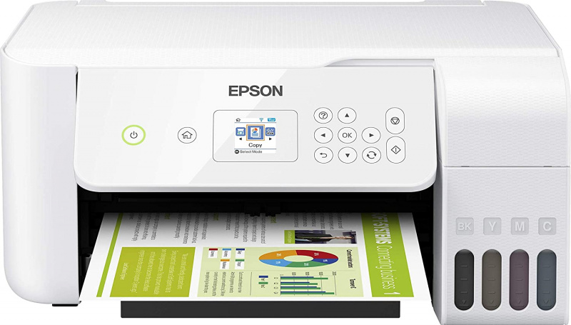 Посмотрел на разные модели, в итоге остановился на Epson EcoTank ET-2726 (у нас он стоит €229, что вполне терпимо, в России - 24186 рублей, что тоже не слишком дорого). Ну и если говорить о чисто технических характеристиках, то он - белого цвета, а у меня вся мебель в кабинете тоже белая - будет гармонировать, что немаловажно.