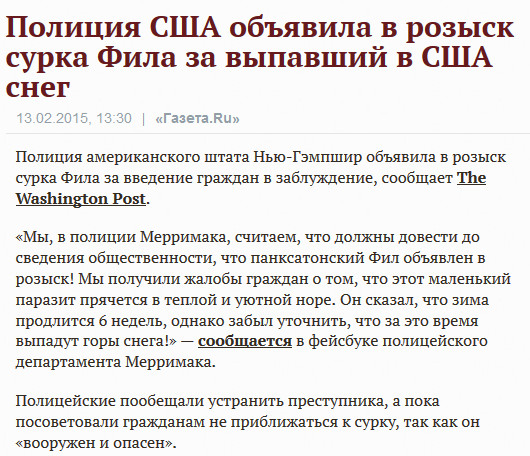 Так что полицию Мерримака (это от меня минут 50 езды - если дорога не снежная) я очень хорошо понимаю, и Фила за такие задвиги пора на кичу, но чтоб без отопления.