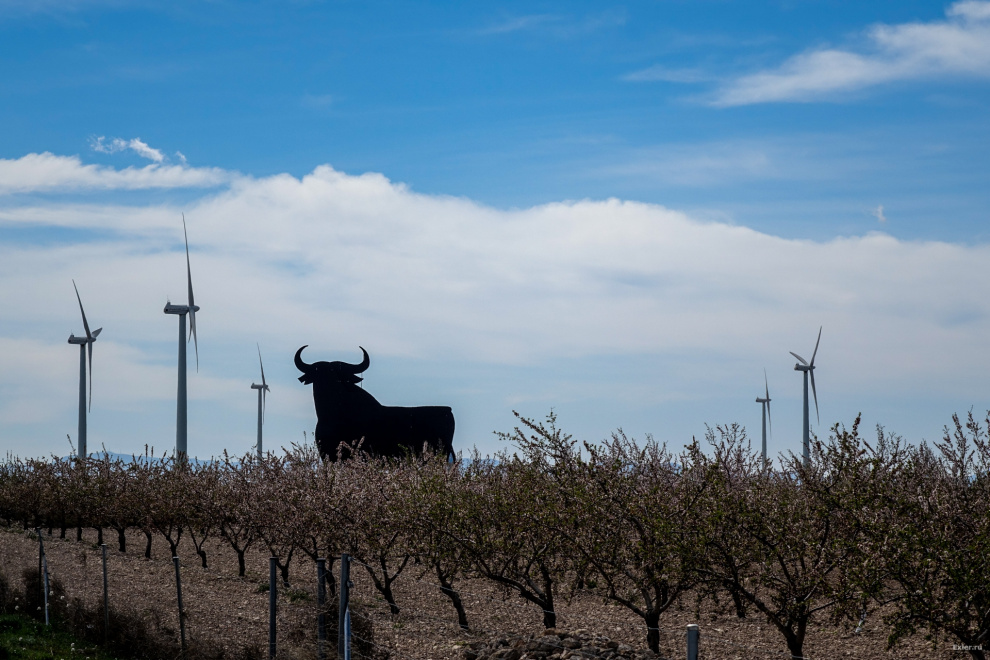 Да, эти бычки остались от рекламы хересного бренди Veterano от торгового дома Osborne. Изначально они были с белой надписью Veterano, но потом после принятия закона о запрете рекламы вдоль дорог эти надписи убрали. Хотели убрать и самих бычков, но общественность не дала и их признали национальным достоянием и символом страны.