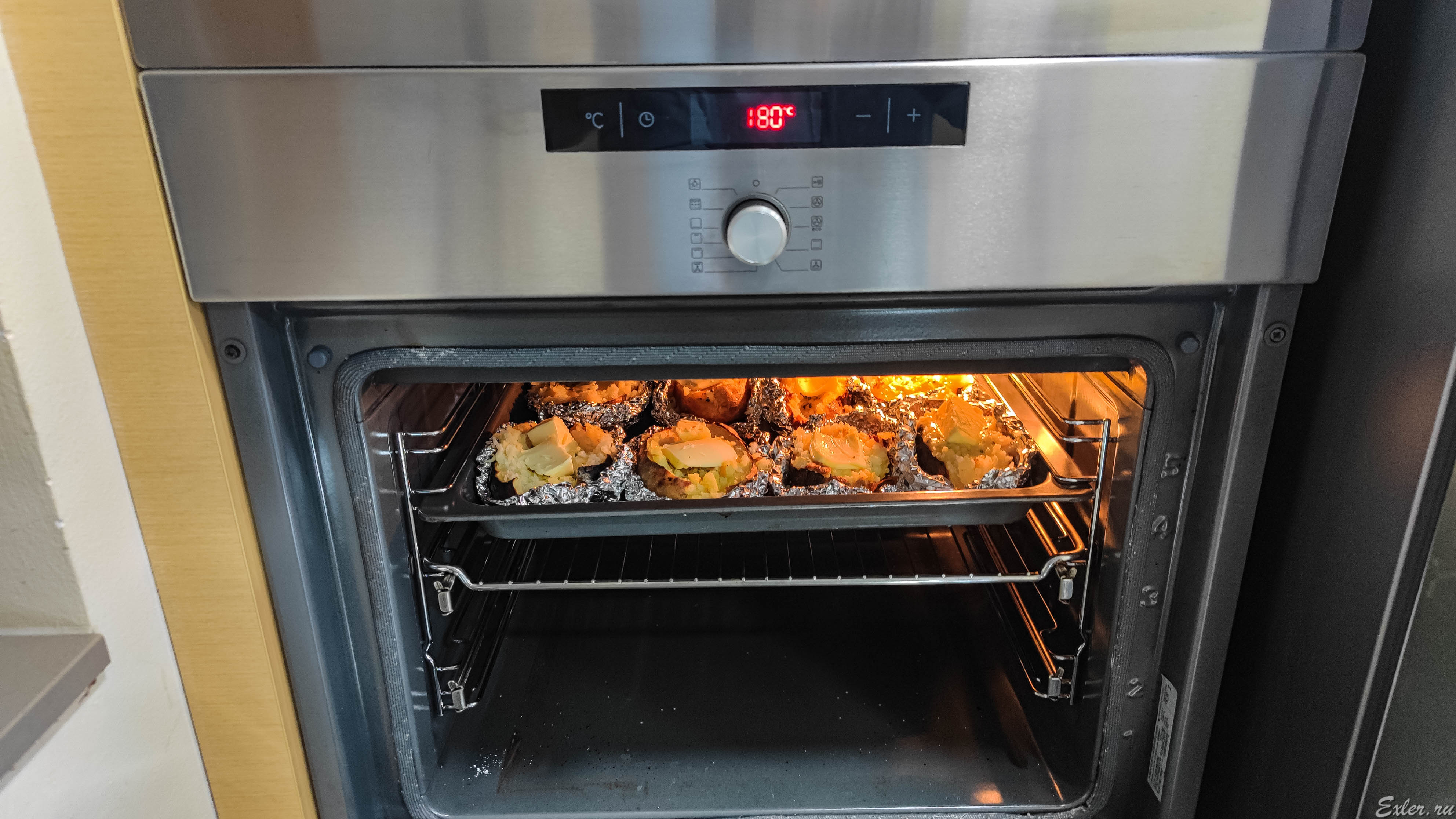 Клубни здоровенные, поэтому сначала они пекутся 20 минут, после чего их перевернули и запекали еще 20 минут.