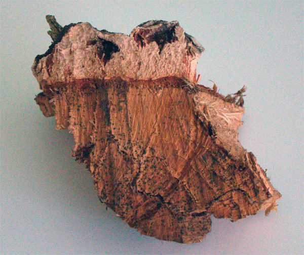 Оказывается, в наших краях растет пробковый дуб - тот самый, из коры которого делают пробки для вина. Руденко углядел рощицу, оторвал образец. Вот так это дело выглядит.