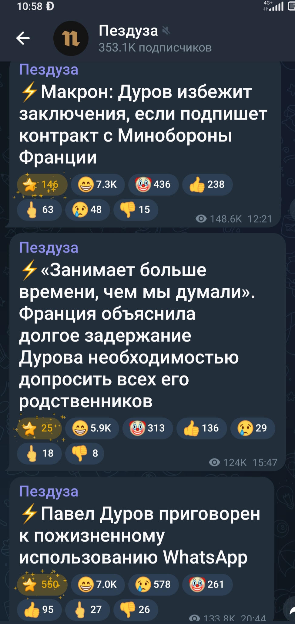 Я уже отмечал забавную ситуацию, при которой за Дурова вовсю топит как z-шелупонь, так и ровно противоположный лагерь, который условно можно назвать "либералами". У "либералов" Дуров - рыцарь без страха и упрека, единственный в мире поборник свободы слова. И все они в один голос заявляют, что, мол, подлые лягушатники прессуют Дурова, потому что он "отказался им выдать ключи шифрования". Оно понятно, что вот эту чушь собачью про "ключи шифрования" они взяли еще из времен, когда Дурова прессовали российские спецслужбы, но в нынешней ситуации никакие "ключи шифрования" не фигурируют даже рядом, и когда люди это зачем-то повторяют - выглядит это полным бредом.