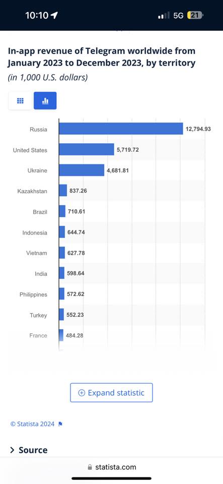 Upd: В какой стране Телеграм зарабатывает больше всего.