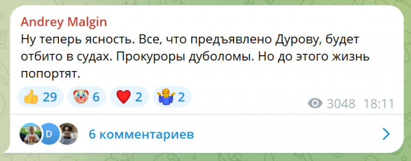В "Новой газете Европа" пишут со ссылкой на французскую прокуратуру, какие именно обвинения предъявлены Дурову. Собственно, из обвинения в отказе сотрудничать при проведении расследования по французским законам и вытекают остальные обвинения, потому что если ты отказываешься сотрудничать, то как бы становишься соучастником преступления.