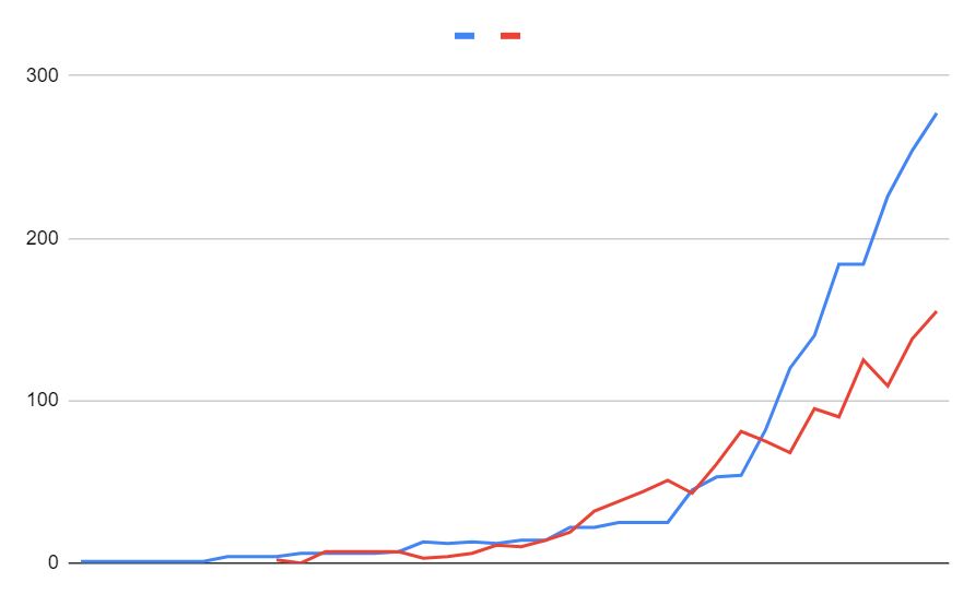 Чё там с плато? Выходим или как? Последние пару тройку дней темпы роста вроде замедлились