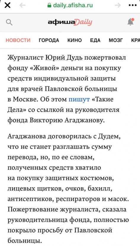 Да не обязательно быть Дудем. Вон владельцы 3д принтеров просто печатают средства защиты и развозят по больницам в Санкт-Петербурге, Москве и других городах. И не орут об этом. Вопрос в том что кто то делает, кто то пиарится