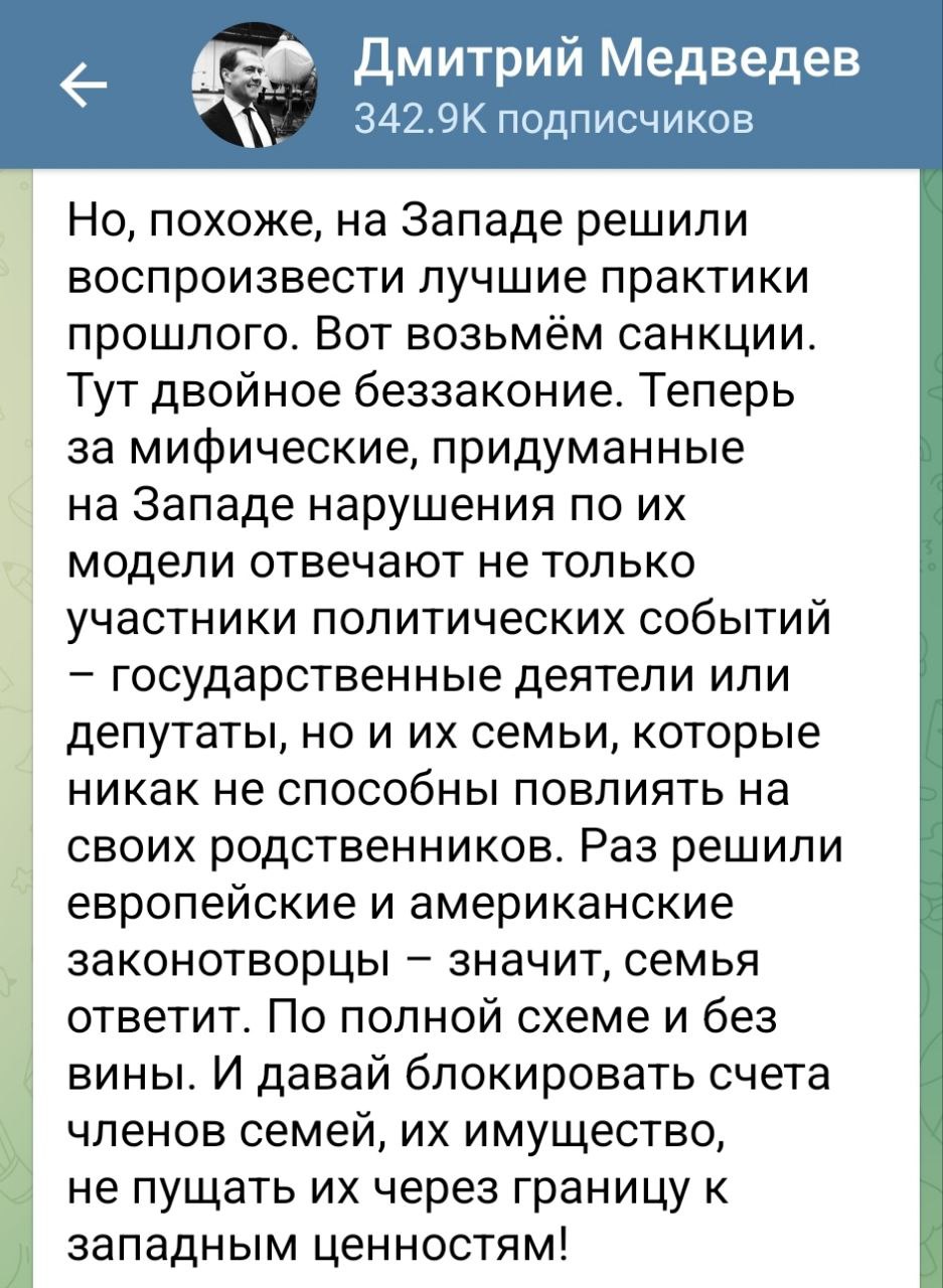 Ну мы же договорились, что я отвечаю серьезно, поэтому говорю: «Никто ничего ни у кого не отобрал. Заморожены активы у 600 человек, которые подозреваются в спонсировании агрессора или преступном развязывании агрессивной войны, что является преступлением даже по УК РФ. Заморозку можно снять через суд (но вряд ли они туда пойдут, так как способы зарабатывания этих денег оставляют сомнения), либо сами государства будут организовывать судебную процедуру. В любом случае будет некое разрешение вопроса, вероятна разморозка активов (если не считать резервы ЦБ, они скорее всего пойдут на компенсации Украине). Наложение имущественных санкций – процедура давняя, законная, применяющаяся нередко, не стоит считать её новостью».