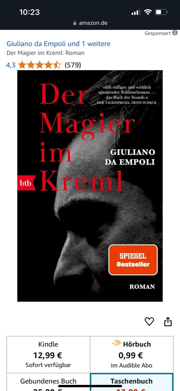 Книга «Волшебник из Кремля», переведенная на более чем 30 языков, стала международным бестселлером, получившим престижную премию Французской академии наук «Гран-при Дю Роман» и финалистом Гонкуровской премии. Его автор Да Эмполи - бывший старший советник премьер-министра Италии Маттео Ренци.