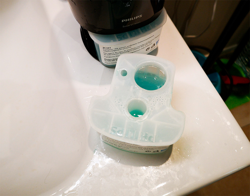 У бритвы Philips S9511, которой я пользуюсь уже много лет, есть специальная станция, в которой бритва дезинфицируется и заряжается. В станцию помещается картридж со специальной жидкостью. Так вот, станция начинает сигнализировать о том, что жидкости не хватает, когда в картридже израсходована только половина. Два картриджа стоят 15 евро, менять один картридж приходится где-то раз в три месяца (очистка делается раз в неделю), так что можно было и не париться, но меня такое явное жлобство возмущает. И я делаю очень просто. Наполовину израсходованный картридж заклеиваю скотчем и ставлю на полку. Когда второй картридж наполовину израсходуется, снова доливаю его до верха из первого картриджа. Наверное, это нищебродство. Но тем не менее.