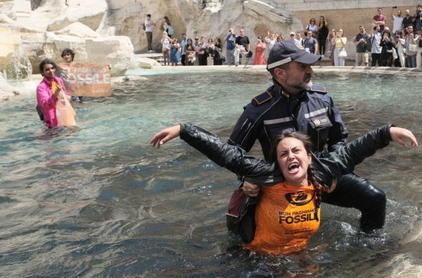 протестующие вылили черную краску в фонтан Треви в итальянской столице.