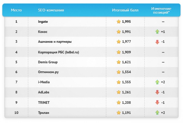 *Изменение позиций по сравнению с рейтингом «Известность бренда SEO-компаний 2012».