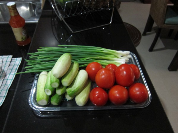 Заказали на вилле экзотический тайский ужин. Сделали действительно все хорошо: подали овощи в устричном соусе, всякие морепродукты барбекю плюс действительно интересные фрукты, однако вот этот набор экзотических тайских фруктов меня заинтересовал больше всех. Его подали на десерт - видимо, это особенно экзотические фрукты, чему я охотно верю.