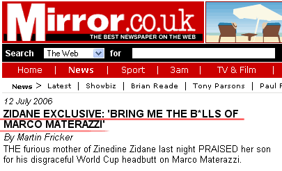 P.S. А вот звездочку они зря поставили. Я сначала прочитал "Bring me the bills of Marco Materazzi" и еще удивился, с чего это мамаша Зидана вдруг собирается оплатить счета подлой итальянской макароны!