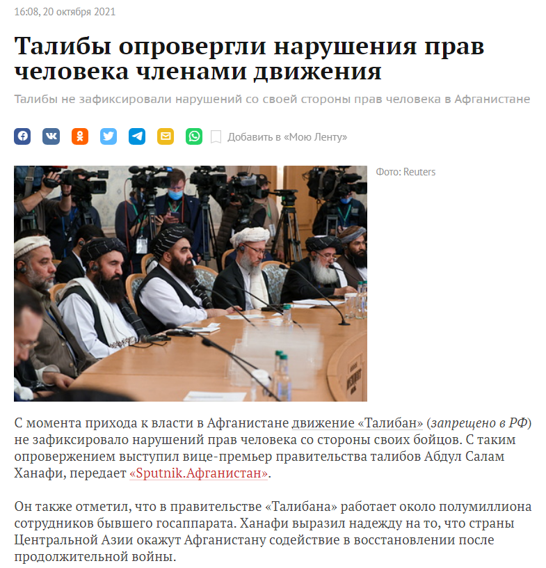 Россия приближается к принятию решения об исключении "Талибана" из списка террористических организаций, заявил угадайте кто.